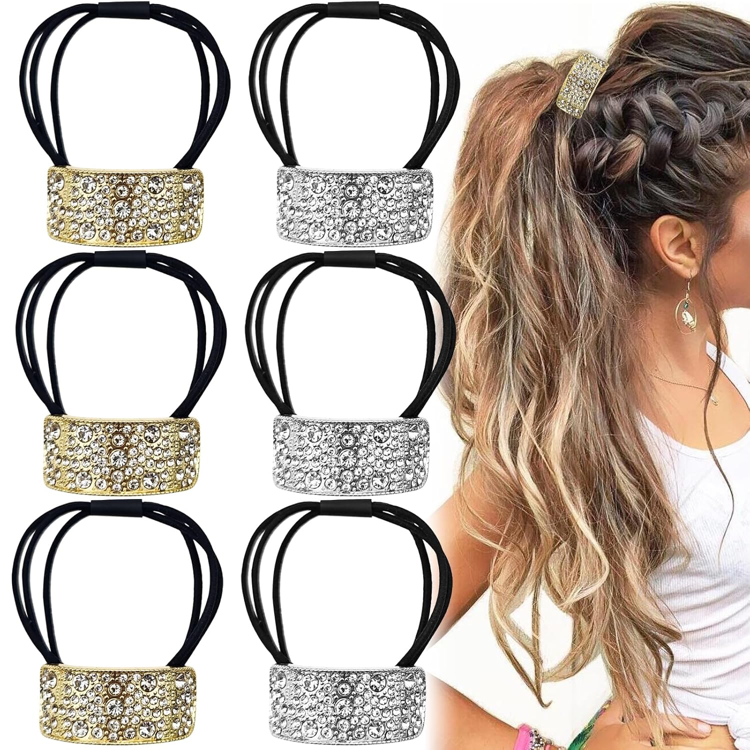 Élastiques à cheveux décoratifs et barrettes en strass